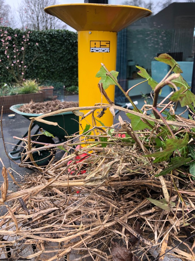 Afgelopen weekend ben ik begonnen met het afknippen van alle dode stengels vd planten in de tuin. Dat leverde een aardige stapel op! We konden dit apparaat even lenen. Best handig! In een ochtendje was het geregeld. Alles afgeknipt & versnipperd. Je hebt nu het prachtigste tuinmateriaal om de bodem in je tuin te verrijken. Insecten en vogels vinden zo’n laag fantastisch en het houdt ook de aarde bedekt bij droogte. 🪲🐞🐦⬛En dat scheelt dan weer extra water geven aan je planten. Wat ik trouwens het hele jaar doe, is uitgebloeide stengels en takjes klein knippen en weer op de bodem tussen de planten gooien. Heb je geen versnipperaar, dan kan je dit met een goede tuinschaar doen. Of je gooit de plantenresten in een compostvat. En dan doen de wormen hun werk.
